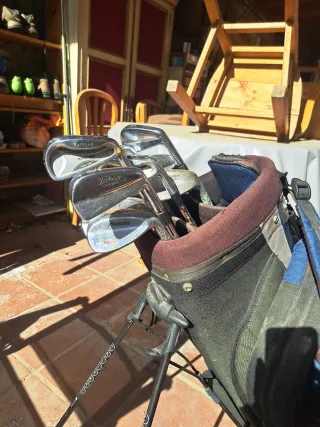 Set de palos de golf Titleist 762, incluye bolsa y putter. Configuración de 8 palos (P a 3) - Marca: Titleist - Modelo: 762 - Varilla Regular Flex de Acero - Grips Lamkin (algunos mejor que otros, pero todos usables) - Incluye bolsa de golf Mizuno - Incluye putter Wilson Fat Shaft Listos para utilizar. Yo salgo a campo con ellos actualmente, en muy buena condición
