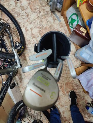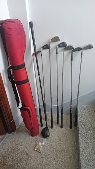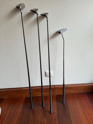 Juego de palos de golf usados. Son antiguos y muestran señales de uso, pero están en buen estado general. - Incluye 10 palos de golf. - Marcas visibles en algunos palos. - Perfectos para principiantes o jugadores ocasionales. - los grips estan miy bien. - el putt es muy básico.