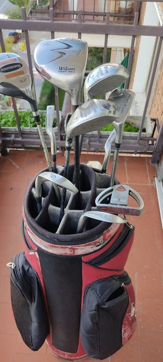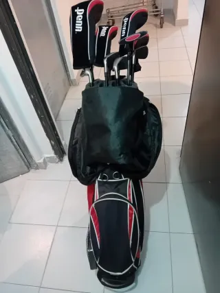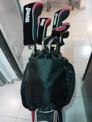 Set de palos de golf Penn con bolsa. - Bolsa de golf negra, roja y blanca. - Incluye varios palos con protectores. - Protectores de palos negros con detalles rojos y blancos.y 34 bolas para recoger en persona en alcorcon