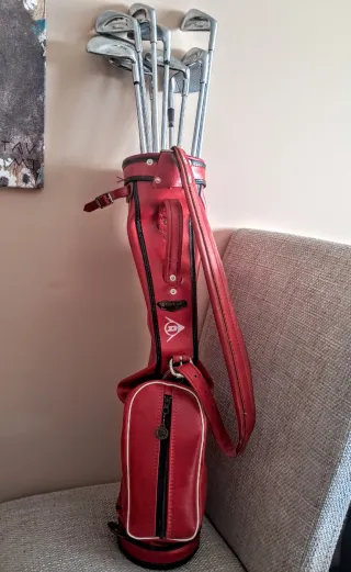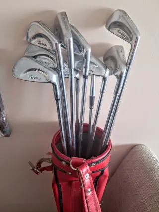 Palos de golf, se han usado una vez (varilla de grafito, flex, modelo…) y la bolsa está en buen estado.