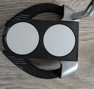 Putt Odyssey con diseño de dos bolas. - Cara del palo con patrón de rejilla. - Dos insertos blancos en la parte superior. - Varilla original - Grip Odyssey - Funda Original
