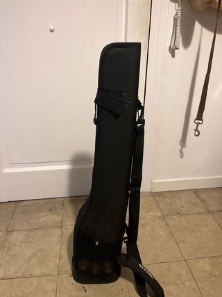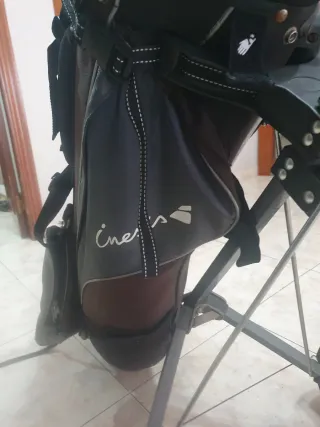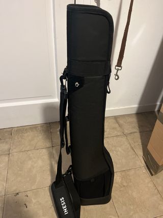 Bolsa de golf Inesis de color negro, diseñada para transportar hasta 5 palos. - Material resistente. - Correa ajustable para el hombro. - 2 Compartimentos de malla en la parte inferior.