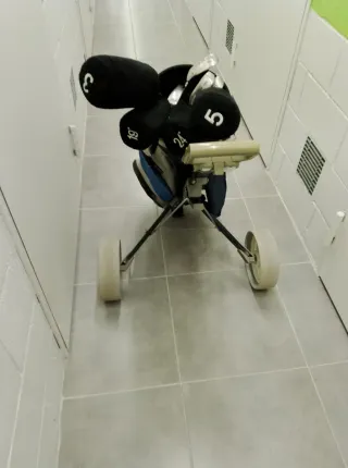 Carrito de golf plegable, ideal para transportar tus palos de golf de forma cómoda y sencilla. - Diseño plegable para fácil almacenamiento y transporte. - Estructura robusta y ligera. - Ruedas resistentes para todo tipo de terrenos.. Recogida en mano , S. Gervasi , Barcelona