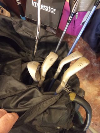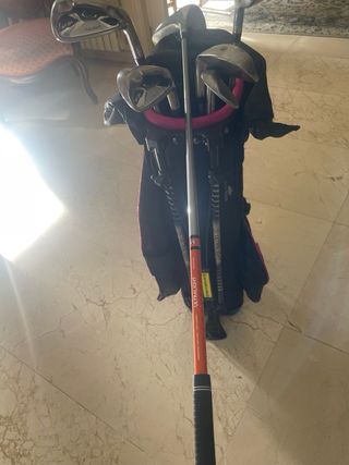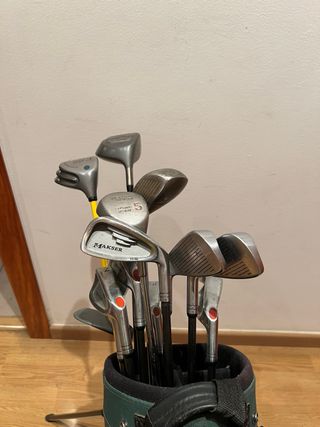 Set de palos de golf para personas zurdas. - Bolsa de golf negra. - Incluye varios palos de golf. - Incluye un 5,6,7,8. un sand un putt y un drive ( palo grande para sacar).