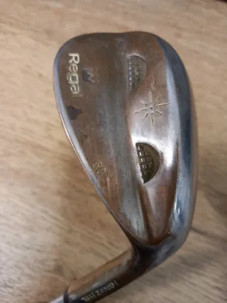 Palo de golf tipo wedge de la marca Regal con 60 grados de loft. Fabricado en acero forjado. - Marca: Regal - Loft: 60 grados - Material: Acero forjado - Tono cobre. - Grip recién cambiado.