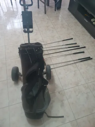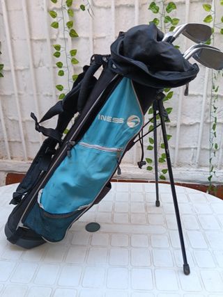 Completo kit de golf listo para usar. Incluye todo lo necesario para empezar a jugar. - Bolsa de golf negra. - Juego de palos de golf. - Bolas de golf. - Tees y guante de golf. Precio negociable.