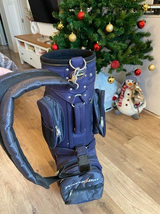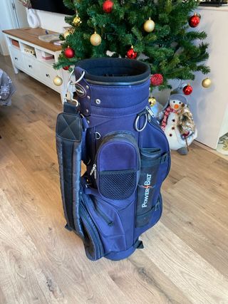 Bolsa de golf de la marca PowerBilt en color azul. - Compartimentos para palos. - Correa ajustable para hombro. - Múltiples bolsillos para accesorios.