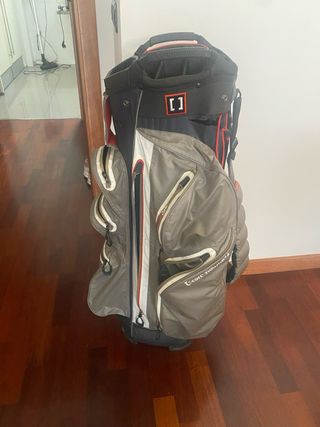 Bolso de golf SCORE INDUSTRIES con diseño moderno y funcional. - Compartimentos múltiples para palos y accesorios. - Materiales resistentes e impermeables. - Asas ergonómicas para un transporte cómodo. - Bolsillos exteriores con cremallera. - Hay un pequeño desgaste (ver en la foto)