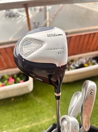 ¡SET DE GOLF COMPLETO PARA JUGADORES ZURDOS! Vendo set completo de golf Founders Club, ideal para iniciación. Incluye bolsa, maderas, hierros y putter. Destacados: Orientación: ¡Palos para ZURDOS (Left-Handed)! Driver: Nº 1 (Titanium 460cc) Founders Club. Maderas: Nº 3, Nº 5 y Híbrido 22º. Hierros: Set completo (incluye 6, 8, 9, etc.). Putter: Modelo Founders Club Tour Series (Mazo). Extras: Bolsa de golf, Guante Inesis, Tees y Cubiertas para maderas. Usado pero en buen estado. ¡Listo para jugar!