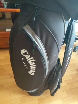 Set de golf completo con bolsa Callaway y 12 palos. - Bolsa de golf Callaway. - Incluye 12 palos de golf RAM. Palos Ram : Drive, 3, 3 20°, 4, 5,6,7,8,9 , S, P Putt white ice rossie - Diseño en color marrón y gris.