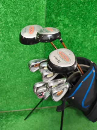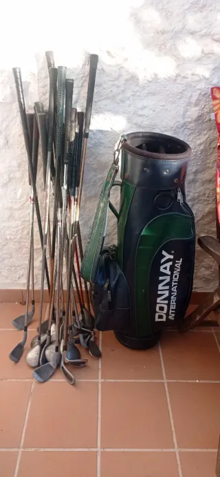 Set de palos de golf de la marca Donnay International, ideal para jugadores de todos los niveles. Incluye bolsa de transporte.solo venta en persona - Bolsa de golf de cuero sintético. - Palos de diferentes tipos y longitudes.