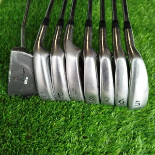 Set / Juego de palos de golf compuesto de hierros y putter, perfecto para Pitch and putt ⛳. Palos de golf en buen estado 👌. Incluye hierros desde el 5 hasta el SW y putter ✨. Posibilidad de enviar con grips nuevos por 6€ extra cada palo 🏌️. Hacemos envíos gratis a partir de 60€ 📦.