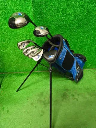 Bolsa de Golf Callaway XJ2 con 6 palos de Golf Putter, Sand, hierro 9, hierro 7, madera y Driver, para niños entre 6-8 años. Nueva es más de 300€.