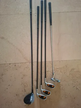 - Madera driver 15° - Hibrido 25° - Hierro 5/6 - Hierro 7/8 - Sand wedge CG Jr Todos con varilla de grafito Launcher LW Junior y grip cleveland en buen estado - Putt (varilla hierro) - Bosa bípode BOSTON