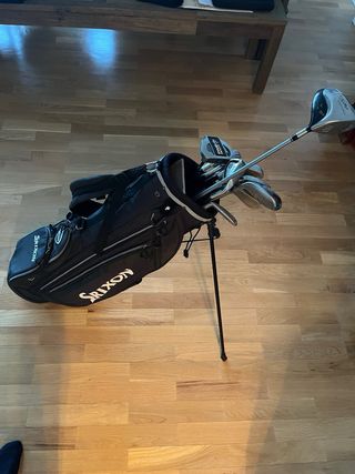 Conjunto de palos de golf y bolsa. - Incluye todos los hierros del 4 al 9, putter, pw y driver. - Bolsa de golf para transportar los palos.