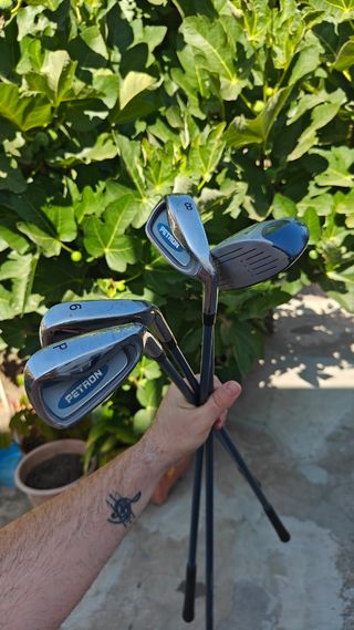 POSIBILIDAD DE ENTREGA EN MANO POR TODA LA COSTA DEL SOL APARTE DEL ENVÍO. Juego de 4 palos de golf Petron usados, en buen estado. Ideales para principiantes o jugadores ocasionales. También por separado: N°6 - 10€ N°8 - 10€ P - 10€ 3(15°) - 15€ Los 4 por 35€ - Incluye 6, P, 8 y un hybrid 3 (15°) - Palos en buen estado, con pequeñisimas señales normales de uso pero muy nuevos. - Grips en buen estado.