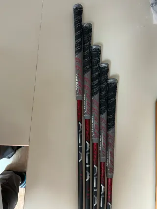 Se venden seis palos de golf. - Incluye fundas protectoras para algunos palos. - Varillas de color rojo y negro.