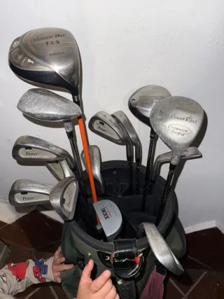 OFERTA HOY Vendo pack de palos de golf antiguos, ideal para iniciarse en el deporte, practicar o incluso como decoración vintage. Incluye: Maderas Repro V-Power, Dynacast, Impak, Wilson Hierros Sounder (6, 7 y wedge) Putter clásico Perfecto para principiantes que quieran probar sin gastar mucho, o coleccionistas de material de golf retro. (Precio negociable)