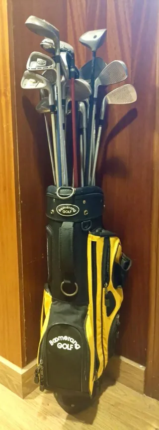 Set de golf completo con bolsa y palos. - Bolsa de golf Boomerang. - Incluye varios palos de golf.