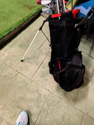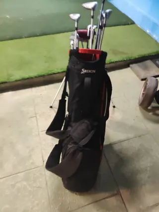 Set completo de palos de golf Srixon, ideal para jugadores de todos los niveles. Incluye bolsa de transporte.Precio negociable. - Bolsa de golf Srixon negra y roja. - Múltiples palos de golf. - Soporte para palos integrado.