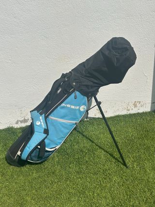 Bolsa de golf Inesis en color azul y negro, con patas desplegables. - Diseño ligero y funcional. - Compartimentos para organizar los palos. - Incluye funda protectora para la lluvia.