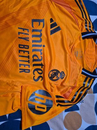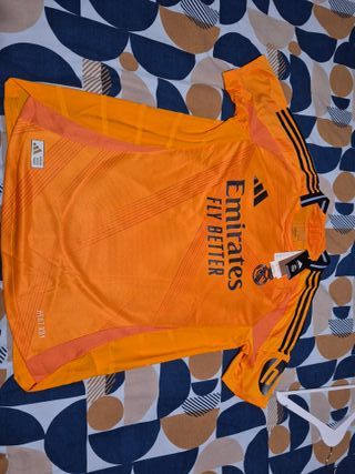 Camiseta original del Real Madrid de la marca Adidas version jugador. Precio en tiendas 150 euros - Color naranja vibrante. - Diseño deportivo con detalles. - Tecnología HEAT.RDY para mayor transpirabilidad.