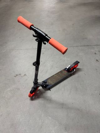 Patinete Oxelo en buen estado, ideal para niños y jóvenes. - Manillar con puños naranjas. - Plataforma con diseño. - Ruedas naranjas.