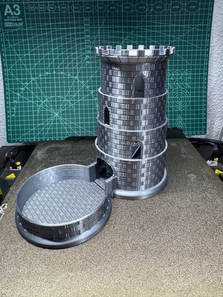 Torre de dados con diseño de castillo, ideal para juegos de rol y de mesa. Con o sin ventanas. - Fabricada con impresión 3D. - Color gris plateado. O elegir color atraves de mensaje privado. *Lo siento, no acepto ofertas.*