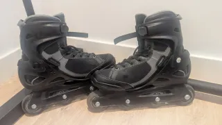 Patines en línea Oxelo para adulto. - Color negro y gris. - Cierre de velcro y cordones. - Ruedas de 80mm. Incluye protecciones de muñeca XL No tiene el freno