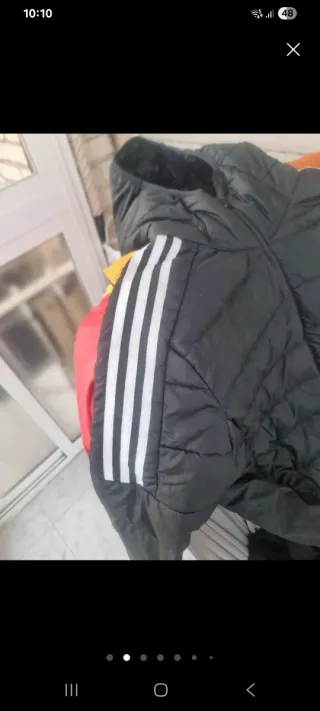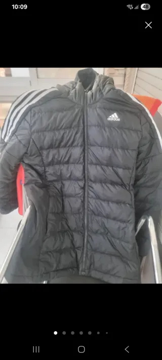 Chaqueta acolchada Adidas Negra y zapatillas joma