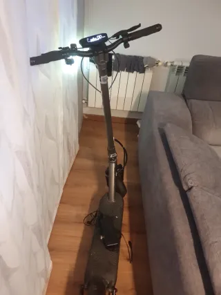Patinete eléctrico SmartGyro K2 en color gris. Es plegable y fácil de transportar. - Manillar ajustable. - Ruedas de 8.5 pulgadas. - Freno trasero. - Luz delantera y trasera. - Le falta la tapa de donde se carga