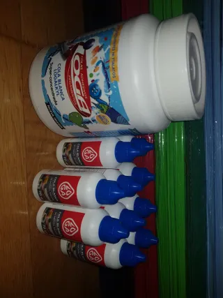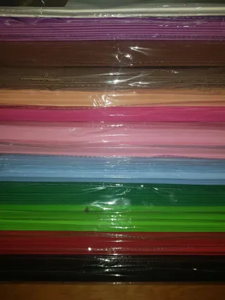 🔵Pack Lara🔵 ✔Papel crepe(4):Verde+Rosa+Amarillo+Blanco=0,50x4=2€. ✔Goma Eva (160láminas): -Negro=20. -Blanco=2. -Verde hierba=20. -Verde oscuro=10. -Rojo=20. -Morado=8. -Rosa claro=20. -Rosa oscuro=10. -Azul claro=20. -Piel=10. -Marrón=10. -Marrón más oscuro=10. ---160láminas/Unidades X 0,30= 48€. ✔Plastilina= 》PLASTILINA CAJA JOVI: 15 bloques de diferentes colores de 150gramos cada uno=7,50€ la caja entera ✔Limpiapipas=8 bolsas de 24 Unidades cada una=3€. ✔Cola 1kg=4€. ✔Cola 70gramos (10 botes)=10 X 0,40= 4€. ✔Pistola silicona ¿? 4€. ✔Barras silicona 0.90€ alguna¿?