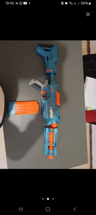 Pistola de juguete Nerf Elite en colores azul y naranja. - Diseño llamativo. - Incluye cargador extraíble.