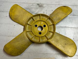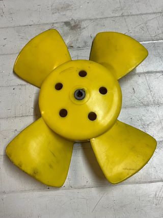 Ventilador de cuatro aspas de color amarillo, ideal para coches clásicos. Diseñado para adaptarse a sistemas de refrigeración. - Material: Plástico resistente. - Color: Amarillo. - Número de aspas: 4.