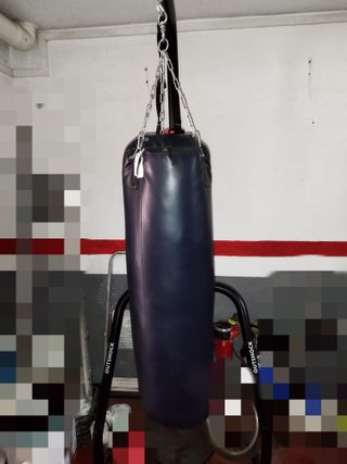 Saco de boxeo de la marca Outshock, ideal para entrenamientos. - Color azul marino. - Cadenas de sujeción incluidas. - Soporte metálico negro.