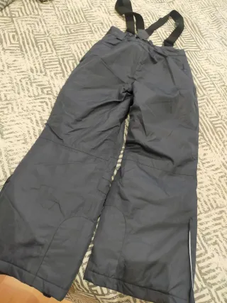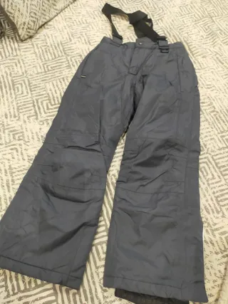 Pantalones de nieve de color gris oscuro, ideales para actividades al aire libre. - Diseño con tirantes ajustables. - Tejido resistente e impermeable. - Bolsillos laterales. Talla 6/8 años