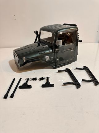 Carrocería para coche radiocontrol a escala 1/10. Carrocería Toyota Fj45 cabina con todos los accesorios y diferentes postes de carrocería para poner en cualquier chasis 1/10. Rueda de repuesto y cubierta incluida Pequeño pliegue en el lado izquierdo se aprecia en las fotos. Nueva estrenar.