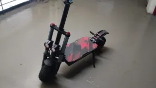 Patinete eléctrico S3 con un diseño llamativo. Sin homologación por la DGT, precio negociable - Plataforma con diseño camuflaje rojo y negro. - Doble faro delantero. - Ruedas todoterreno.