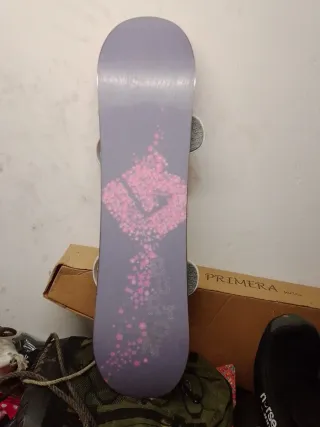 Tabla de snowboard Burton chicklet infantil de 90 cm, con un divertido diseño rosa lleno de estrellas. Ideal para los más pequeños que se inician en el snowboard. - Diseño: Rosa con estrellas. - Longitud: 90 cm. Está muy poca usada.