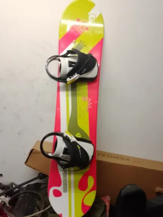 Tabla de snowboard k2 infantil con un diseño divertido y colorido. Perfecta para iniciarse en el deporte. - Talla 105 - Fijaciones incluidas de un clip únicamente para niños Usada muy poco, 2 veces temporada pasada y otras 2 o 3 la anterior. Se envía fuera de wallapop