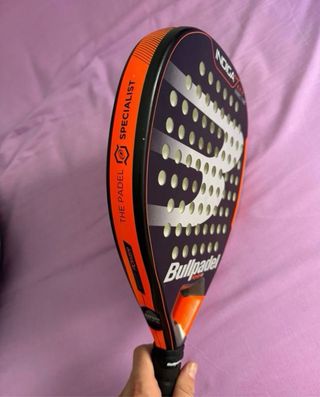 Pala de pádel Bullpadel Indigo Power. - Diseño con el logo de Bullpadel. - Marco negro con detalles naranjas. - Agarre negro.