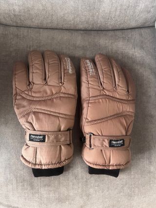 Guantes de nieve con aislamiento Thinsulate. - Talla L (equivalente a talla 9). - Color marrón claro. - Cierre ajustable en la muñeca.