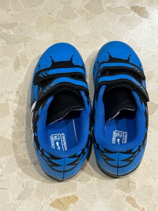 Zapatillas de fútbol para niño en color azul. Prácticamente nuevas. Puestas 2 veces. - Cierre de velcro. - Diseño deportivo. - Talla 32