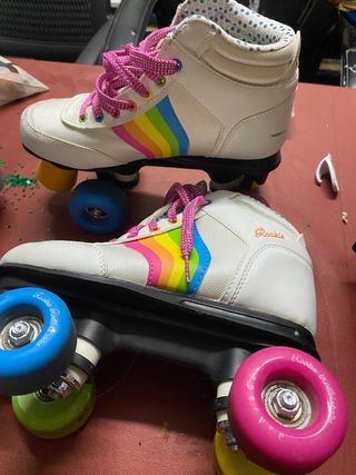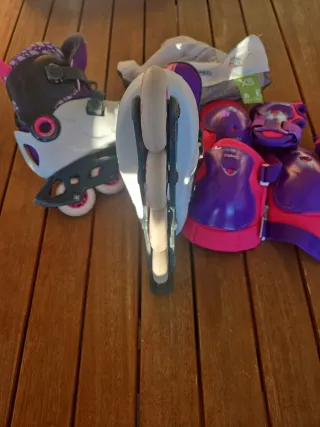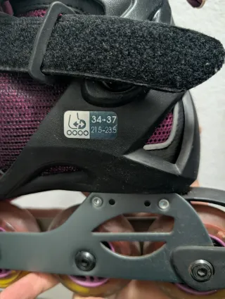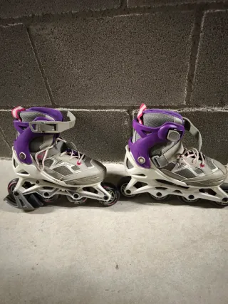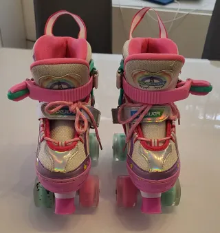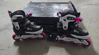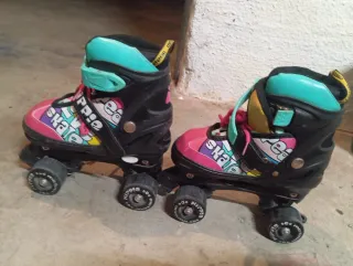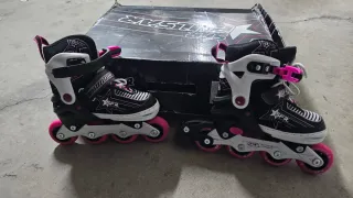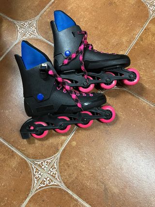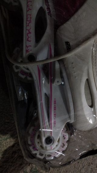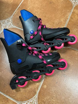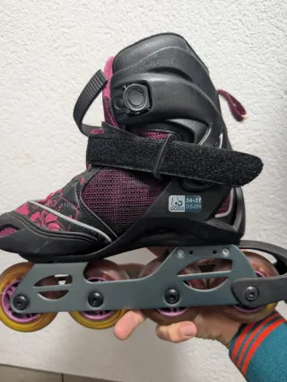 Color rosa y blanco talla del.31 al.34 Poco uso. - con colores en las ruedas. - Cierre de velcro y hebilla para un ajuste seguro. - Bolsa de transporte incluida.