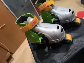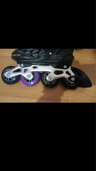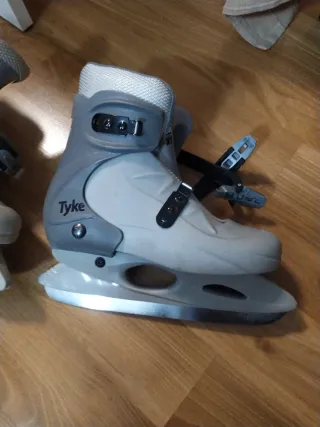 Patines de hielo con ajuste de talla. - Cierre de hebilla. - Rueda de 80mm. - Tallas 34-37 y 8-11. Precio en conjunto 45. Por separado 25