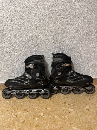 Patines en línea Fila Masterwave en color negro. Diseñados para ofrecer comodidad y rendimiento. - Cierre con hebilla y velcro. - Ruedas de alta calidad. - Botín interior acolchado. Los vendo por no uso