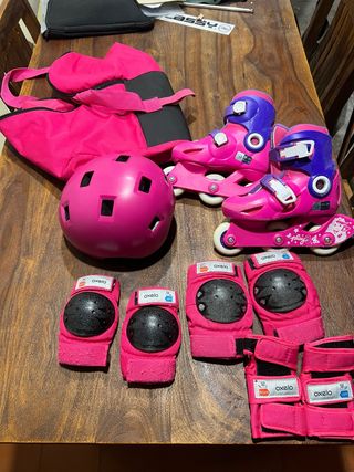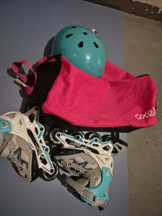 Conjunto casco , protecciones y patines debla marca oxelo!!! Perfectos para iniciación