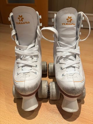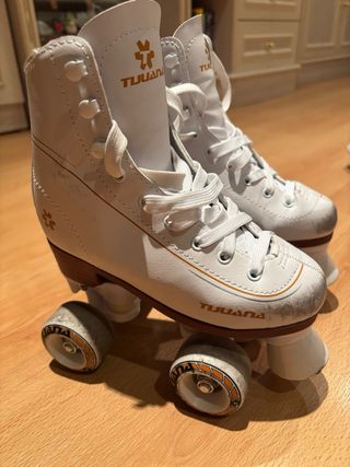Patines de bota blancos con 4 ruedas. - Talla 32. - Marca Tijuana.