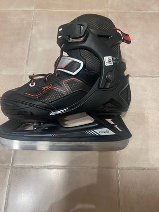 Patines de hielo Oxelo en color negro con detalles en naranja. - Cierre con hebilla y velcro.
