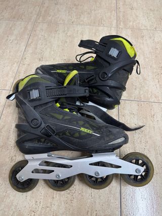 Patines en línea de la marca Roces en color negro y detalles en amarillo. - Cierre de carraca y velcro. - Ruedas de 80 mm. - Botín interior acolchado.